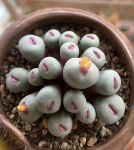 *Tiểu Hồng Môi: “小红嘴” (xiǎo hóng zuǐ) là tên gọi của một loài cây cảnh thuộc họ Xương Rồng, có tên khoa học là Conophytum pageae, nổi tiếng với hình dáng nhỏ nhắn, hai lá dính liền tạo thành hình dạng giống môi hoặc quả mọng, với đỉnh lá màu đỏ và có hoa màu vàng, trắng hoặc hồng. Hình minh hoạ: